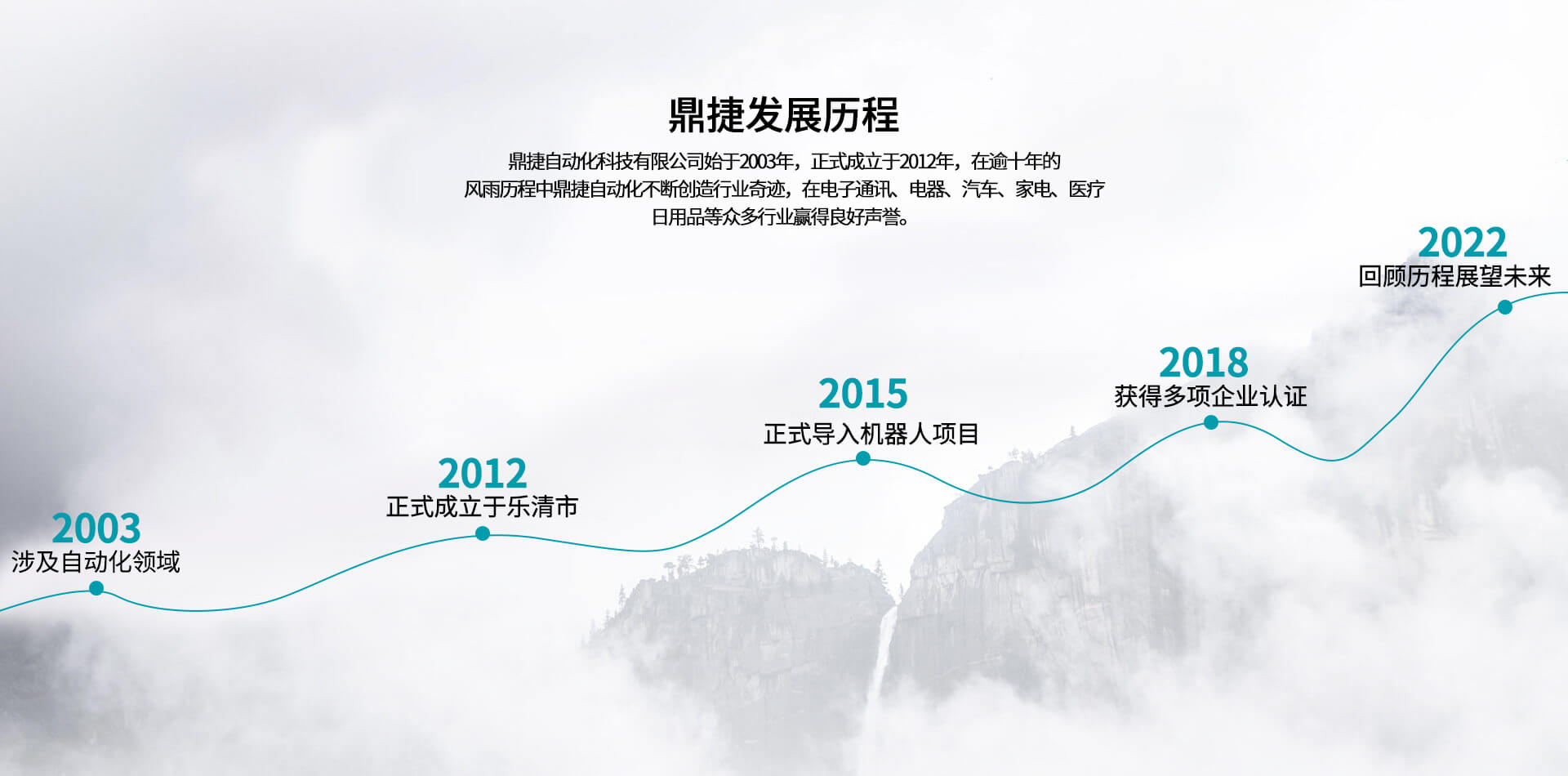 公司始于2012年,在逾十年的風雨歷程中,不斷創(chuàng)造行業(yè)奇跡,在電子通訊、電器、汽車、家電、醫(yī)療、日用品等眾多行業(yè)贏得良好聲譽。公司坐落于浙江省樂清經(jīng)濟開發(fā)區(qū),現(xiàn)有人員63人,擁有經(jīng)驗豐富的工程技術(shù)研發(fā)團隊11人,其中高級工程6人,具備本科以上學歷高級工程人員比例78%;同時鼎捷自動化在蘇州,東莞等地設(shè)立分公司以服務目標市場客戶,目前鼎捷自動化已經(jīng)為下客戶提供配套自動化解決方案:泰科、安費諾、莫士、華為、中興、普聯(lián)、智英、意華、德豐、公牛、萬事達、華豐、飛雕、普思、冠聯(lián)、俊朗松田、進聯(lián)、高正、盛凌等。鼎捷自動化專業(yè)從事連接器、開關(guān)及相關(guān)電子、電器、五金、塑膠產(chǎn)品組裝自動化定制、設(shè)計、制造、銷售。2012年,鼎捷自動化正式導入機器人應用項目,可為各類客戶提供電子、電器、汽車、五金、塑膠等集成自動化智能組裝系統(tǒng)。